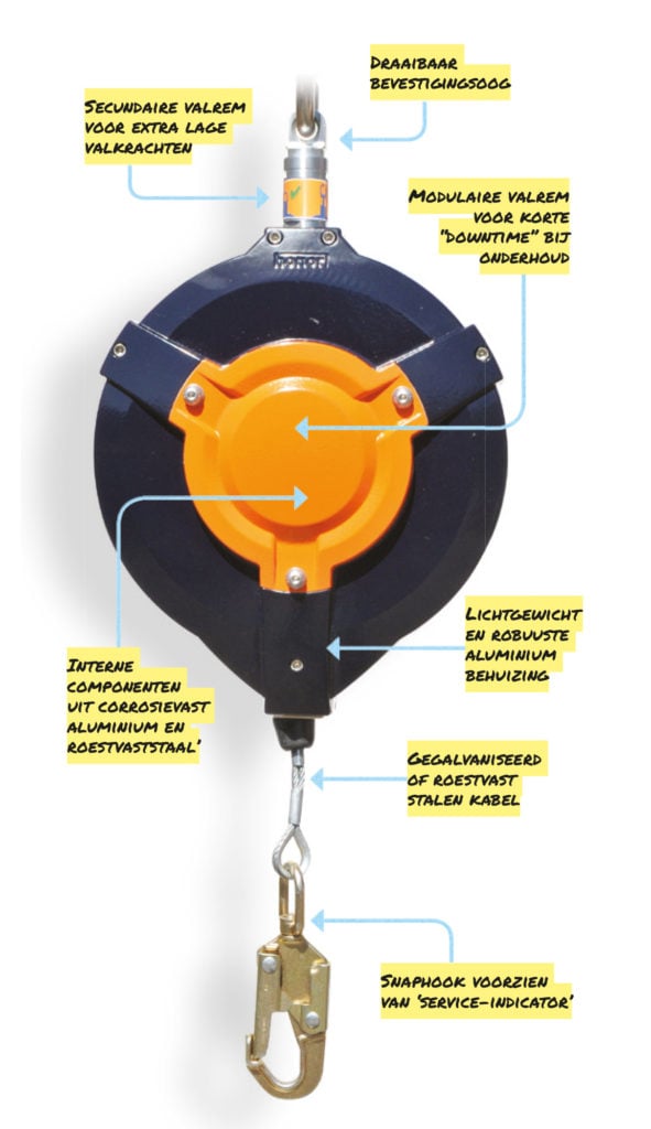 Het FAB-valstopblok van HONOR heeft een gepatenteerd en modulair toestelontwerp. Terwijl de gebruiker volop bewegingsvrijheid ervaart, wordt hij tegelijkertijd optimaal beschermd. Het FAB-valstopblok beperkt de valafstand en valstopkrachten tot het minimum en draagt net als alle andere HONOR-producten bij aan de nieuwe norm voor persoonlijke veiligheid. Kies uit de FAB15 of FAB33, afhankelijk van de gewenste kabellengte. Beide uitvoeringen hebben onder andere een robuuste aluminium behuizing, corrosie- en roestvrije componenten en een karabijnhaak met ‘service-indicator’. Ook zijn ze voorzien van een draaibaar bevestigingsoog en een gegalvaniseerde of roestvrije stalen kabel.