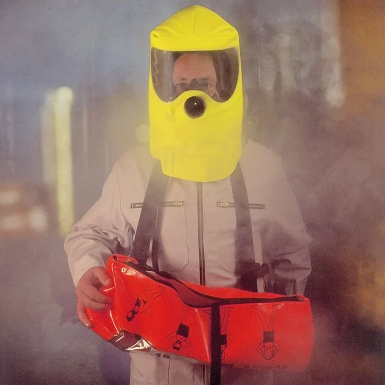 Het vluchttoestel S-Cap-Air biedt adembescherming in zuurstofarme en toxische atmosferen zoals de chemische industrie, op boorplatformen, in raffinaderijen en waterzuiveringen. Het systeem is conform de nieuwste SOLAS-eisen binnen de maritieme sector, en bestaat uit een ademluchtcilinder en een drukindicator voor visuele controle van de inzettijd. De luchttoevoer start automatisch na één simpele handeling. Het toestel omvat een fluorescerende hoofdkap met een groot venster en een geïntegreerd halfgelaatsmasker. Dankzij het lichte en ergonomische ontwerp trekt de drager het in een mum van tijd aan. Het gebruik is al even eenvoudig: startkoord aantrekken en hoofdkap opzetten. De opvallende draagtas verzekert een goede zichtbaarheid en beschermt tegen omgevingsinvloeden.