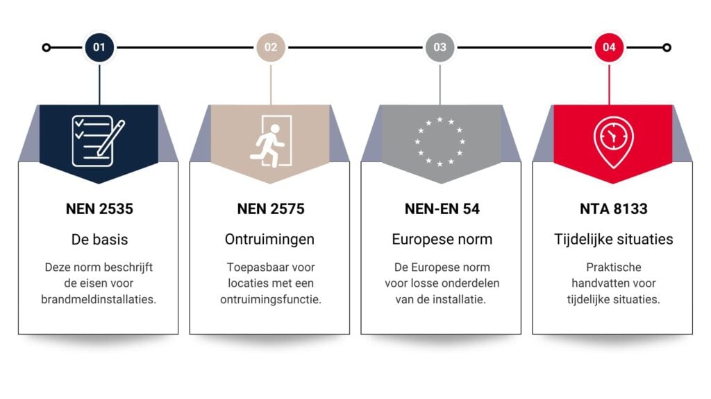 Er is geen aparte “tijdelijke” norm voor brandmeldsystemen, maar er zijn wél een aantal bestaande normen en afspraken die ook op tijdelijke installaties van toepassing zijn: